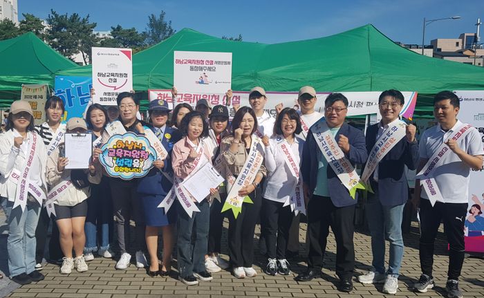 지난 24일, 하남종합운동장에서 진행된 ‘하남시 시민의 날’ 행사에서 김기윤 하남교육지원청설립추진위원장, 최대인 학부모연합회장, 조선영 학교운영위원협의회, 조지연 중학교학부모폴리스단장, 최지순 녹색어머니연합회장 등 학부모들은 하남교육지원청 설립을 위한 서명운동을 펼쳤다.
