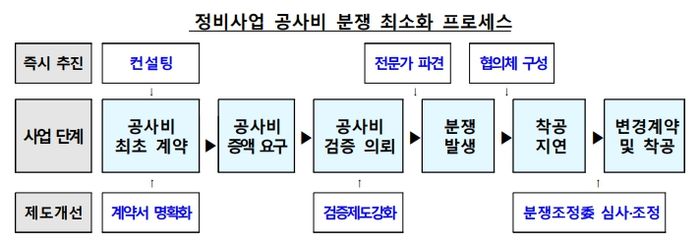 도심공급기반 확충을 위한 재건축·재개발 사업절차 개선도 이뤄진다. 공사비 분쟁을 줄이기 위해 계약체결 시 전문기관의 컨설팅 지원, 분쟁 우려시 조정전문가 파견 및 분쟁조정협의체 구성을 통해 정상화를 지원한다.