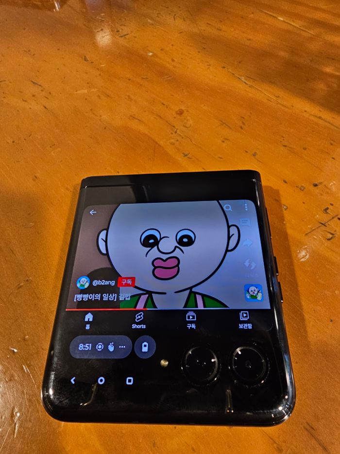 모토로라 외부 화면으로 본 '빵빵이의 일상'. 화면이 조금 짤리게 나온다.ⓒ데일리안 남궁경 기자
