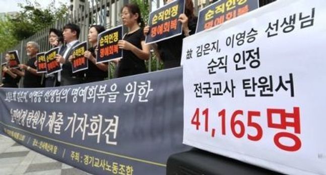 고(故) 이영승 교사의 유족 측이 직무유기 등 혐의로 당시 호원초 교장과 교감 등 학교 관계자 4명과 교육행정직 공무원 1명에 대한에 대한 고소장을 의정부경찰서에 제출했다.ⓒ연합뉴스