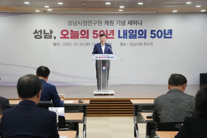 성남시정연구원은 24일 성남시청 3층 한누리에서 ‘성남 오늘의 50년, 내일의 50년’을 주제로 세미나를 개최했다.