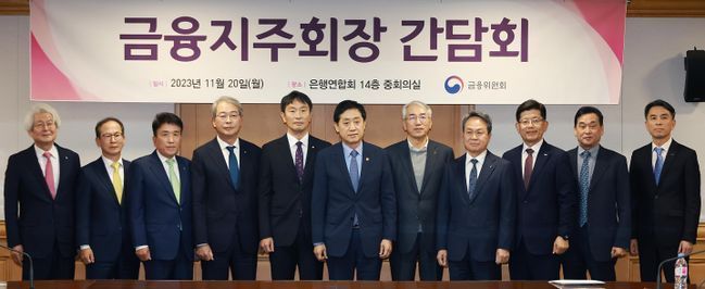 이날 금융지주 회장단 간담회에는 이석준 NH농협금융 회장, 진옥동 신한금융 회장, 임종룡 우리금융 회장, 함영주 하나금융 회장, 양종희 KB금융 부회장, 빈대인 BNK금융 회장, 김기홍 JB금융 회장, 김태오 DGB금융 회장 등 8대 은행금융 수장들과 은행연합회 전무가 참석했다.