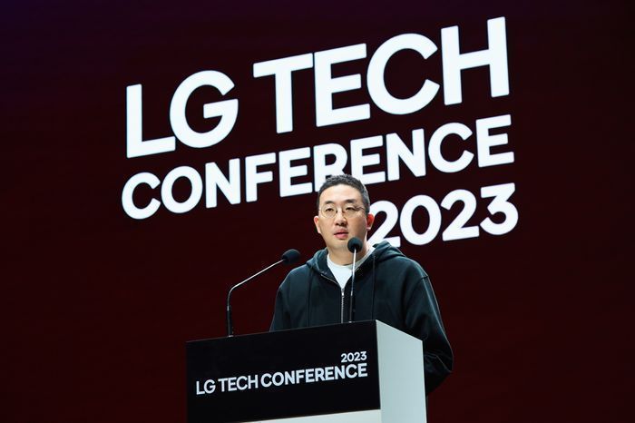 구광모 LG 회장이 3월 16일 서울 마곡 LG사이언스파크에서 열린 LG테크콘퍼런스에서 인사말을 하고 있다. ⓒLG