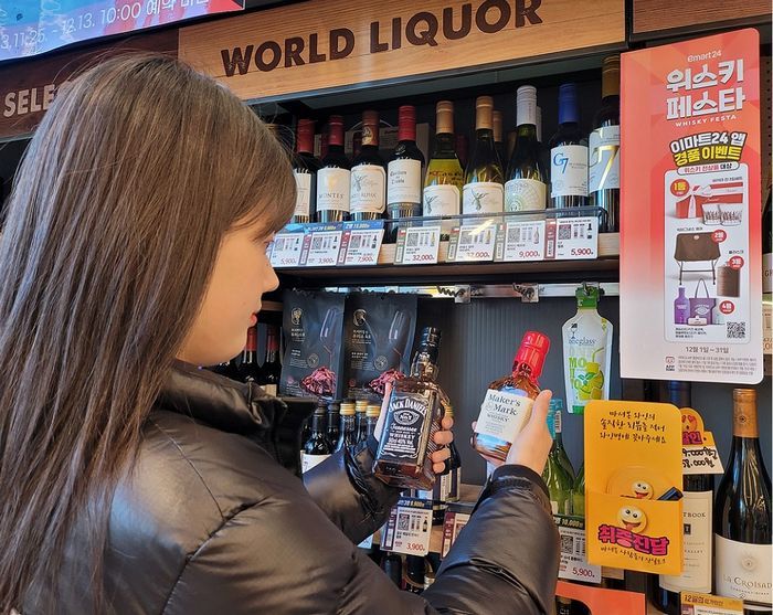 이마트24는 위스키 매출이 집중되는 12월 가격 할인 혜택과 경품 이벤트 등 ‘트리플 혜택’을 제공하며 주류 고객 잡기에 총력을 기울인다.