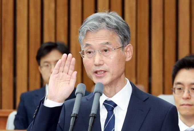 조희대 대법원장 후보자가 5일 국회에서 열린 인사청문회에서 선서하고 있다.ⓒ연합뉴스
