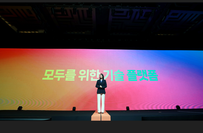 최수연 네이버 대표가 지난해 8월 팀네이버 컨퍼런스 ‘단(DAN) 23’에서 오프닝 키노트를 하고 있다. ⓒ네이버