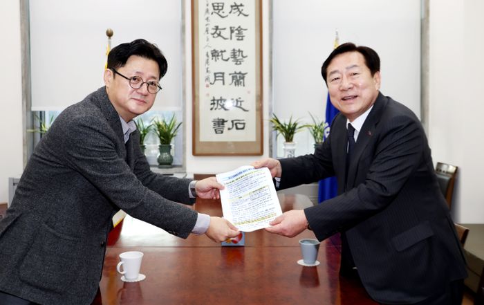 중소기업중앙회는 김기문 중소기업중앙회장이 24일 여의도 국회에서 홍익표 더불어민주당 원내대표와 윤재옥 국민의힘 원내대표를 각각 예방했다고 밝혔다.