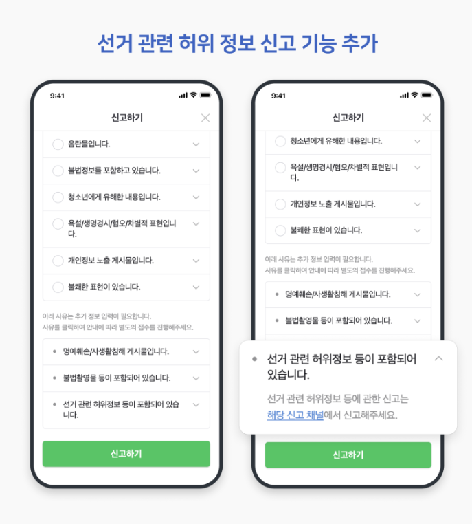 네이버 뉴스, 선거 관련 허위정보 신고 기능 추가. ⓒ네이버