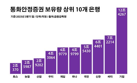 통화안정증권 보유량 상위 10개 은행. ⓒ데일리안 부광우 기자