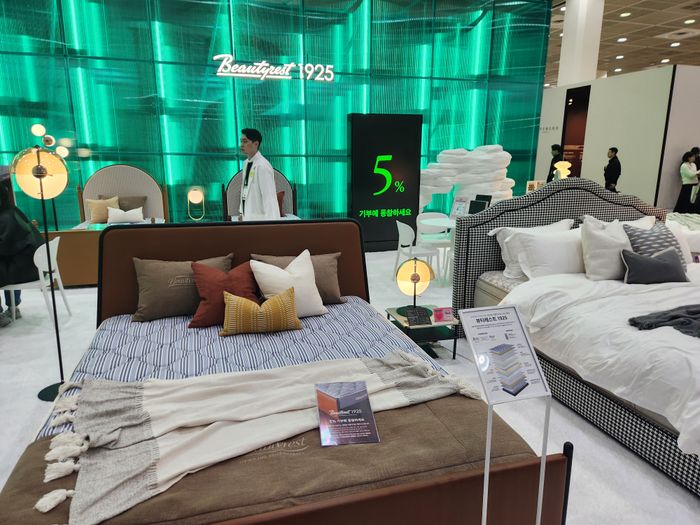 시몬스 부스에 전시된 뷰티레스트 1925 침대. 매출의 5%를 삼성서울병원 소아청소년센터 리모델링 기금으로 기부한다.ⓒ최승근기자