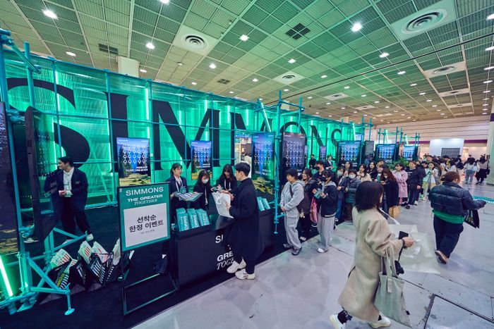 ‘2024 서울리빙디자인페어’에 참가한 시몬스 부스 전경. 관람객들이 이벤트에 참여하기 위해 줄을 서고 있다.ⓒ시몬스