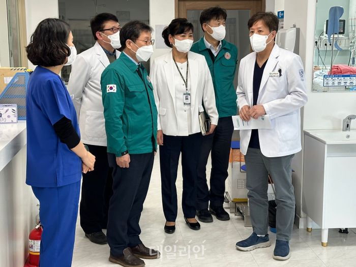 이 차관은 필수진료시설 및 병동을 돌아보며 응급진료 및 수술 등 비상상황에 신속히 대응할 수 있는지 비상대기근무 현황 및 유관기관 비상연락망 작동 상황 등을 면밀히 점검했다.