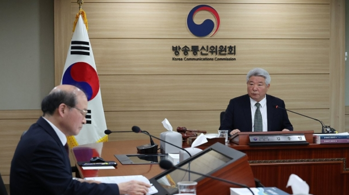 김홍일 방송통신위원장이 13일 과천정부청사에서 단통법 시행령 개정에 따른 관련 고시 제개정(안) 등을 의결하기 위해 열린 14차 방송통신위원회를 주재하고 있다. ⓒ연합뉴스