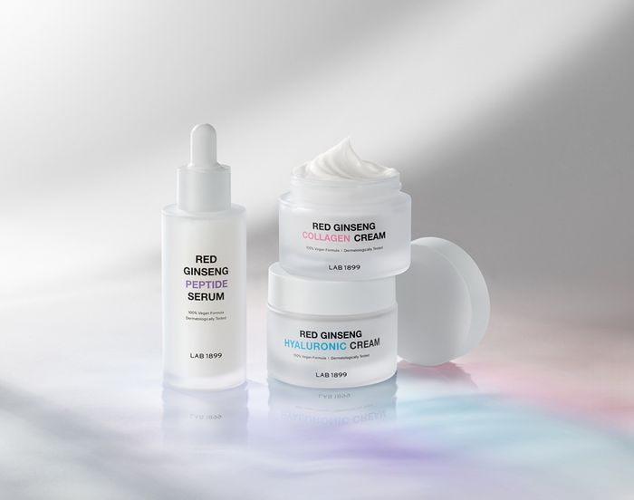 정관장의 고기능 비건 뷰티 브랜드 랩 1899가 신제품 ‘레드 진생 펩타이드 세럼’,‘레드 진생 콜라겐 크림’, ‘레드 진생 히알루론산 크림’ 3종을 출시했다.