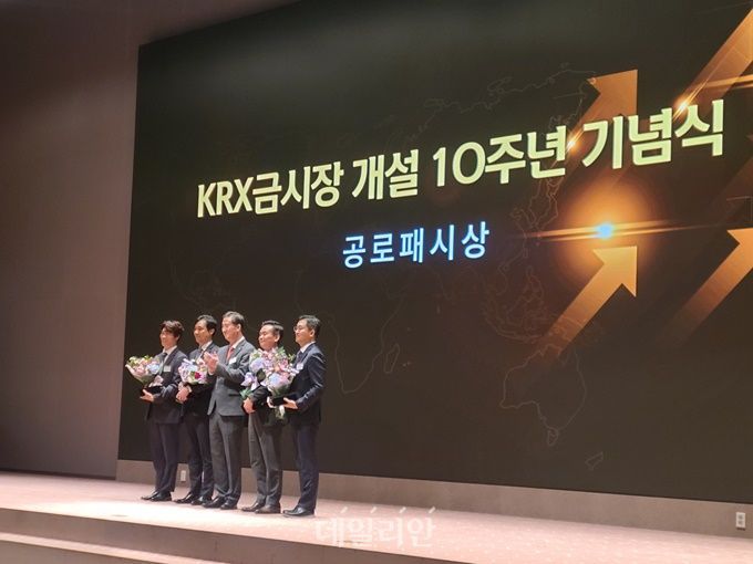 우수 유동성공급자(LP)로서 공로패를 수상한 한국투자증권의 지현준 본부장은 “KRX금시장이 지난 10여년 동안 성장했는 데 거래소와 업계가 함께 노력하면 더 발전할 여지가 있다”며 “LP증권사로서 KRX금시장이 성장할 수 있도록 역할을 다하겠다”고 밝혔다.