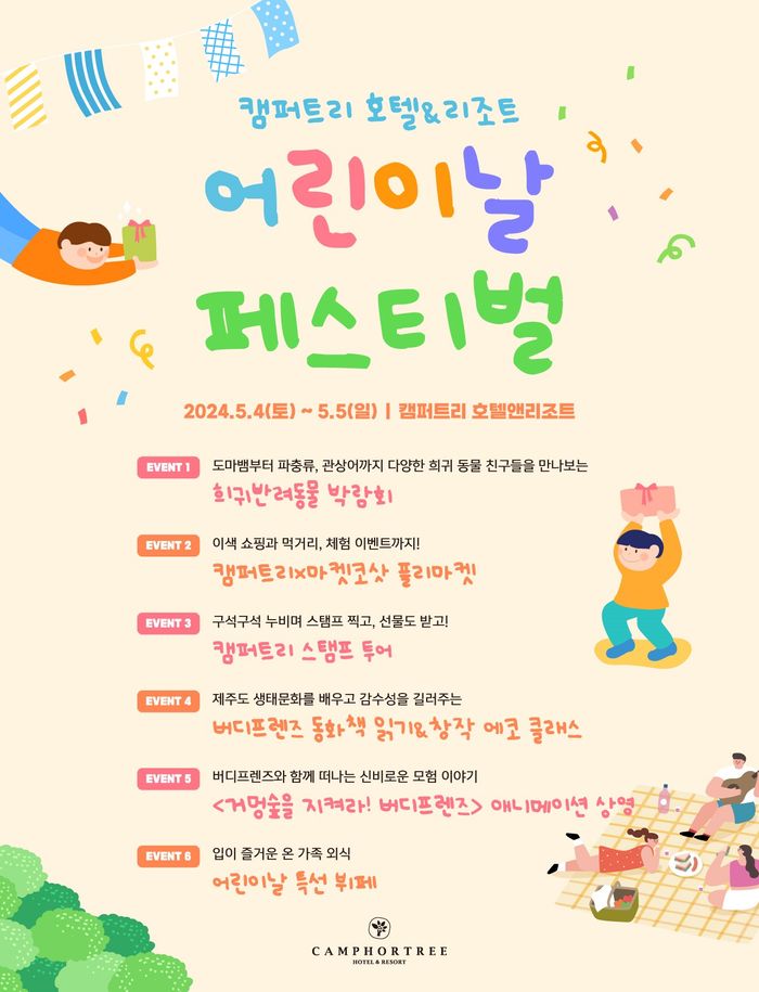 제주 캠퍼트리 호텔앤리조트가 어린이날을 맞아 5월 4일부터 5월 5일까지 양일간, 온 가족이 함께하는 다채로운 이벤트를 진행한다.