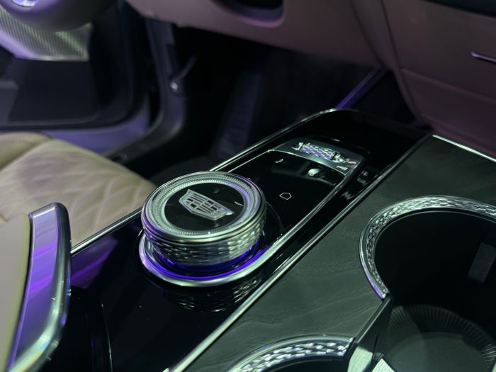 크리스탈을 가공해 만들어진 컵홀더와 인포테인먼트 제어 다이얼 컨트롤러.ⓒ데일리안 편은지 기자