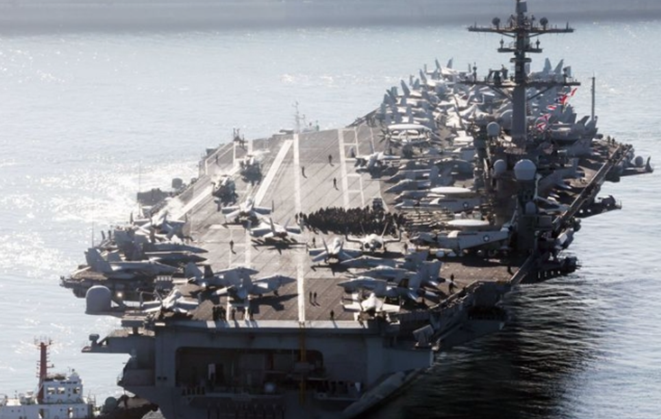 미국 해군의 핵추진 항공모함인 칼빈슨함이 지난해 11월 21일 부산 남구 해군작전사령부 부산기지에 압항하고 있다. ⓒ뉴시스