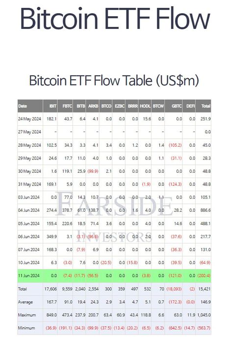 한편 20거래일 연속 순유입을 이어오던 미국 비트코인 현물 ETF 자금 움직임은 현재 소폭 소강 상태다. 지난 10일(현지시간)에는 6490만 달러(약 895억원)가 순유출됐고, 11일(현지시간)에는 2억 달러(약 2758억원) 순유출이 나타났다. 12일 오후 2시 코인마켓캡 기준 비트코인은 6만7467달러(약 9301만원) 대에 거래되고 있다.