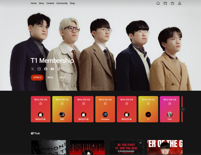 T1 팬페이지에는 멤버십 회원만 볼 수 있는 사진 및 영상 콘텐츠 등이 게재돼있다. ⓒT1 팬 플랫폼