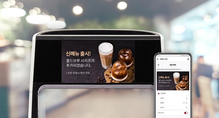 CMS(Content Management System)가 탑재돼 모바일 앱으로도 손쉽게 콘텐츠를 업로드 한다. 10인치 디스플레이를 통해 대기 고객들에게는 각종 홍보영상과 메뉴 안내를, 빈 좌석이 생기면 테이블까지 에스코트도 한다.