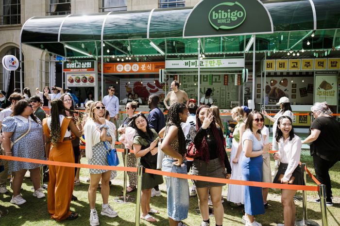 코리아하우스 야외 정원의 비비고 시장에서 음식을 사기 위해 기다리는 관람객들. ⓒ CJ