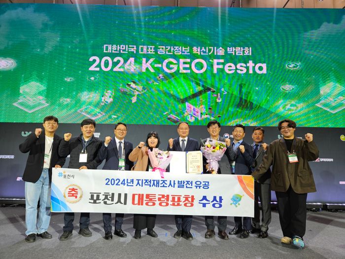 경기 포천시는 지난 6일 국토교통부가 주최하는 ‘2024년 K-GEO Festa’에서 지적재조사 발전에 기여한 공로로 대통령 표창을 수상했다고 밝혔다. 이는 경기도, 국토교통부 기관 표창에 이어 3년 연속 표창 수상이다.