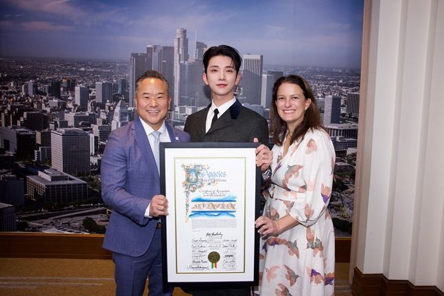 LA시의회는 8일(이하 현지시간) 세븐틴 멤버 조슈아를 LA 시청으로 초청해 감사패를 수여했다. 이는 예술·문화·커뮤니티에 기여한 단체 및 개인에게 주어지는 것으로, LA시의회는 세븐틴이 공연과 더 시티 프로젝트로 도시를 널리 알린 점을 높게 평가했다.