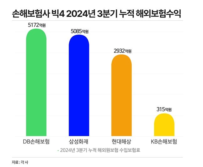 손해보험사 빅4 2024년 3분기 누적 해외보험수익. ⓒ데일리안 황현욱 기자