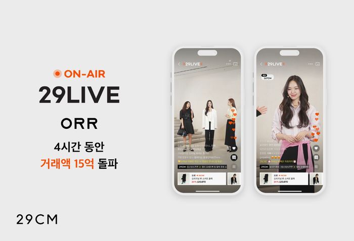 지난 4일 여성 디자이너 브랜드 ‘오르’는 29CM 입점 첫날 진행한 라이브 콘텐츠 '29라이브(29LIVE)'에서 4시간 동안 15억원 이상의 거래액을 기록했다.
