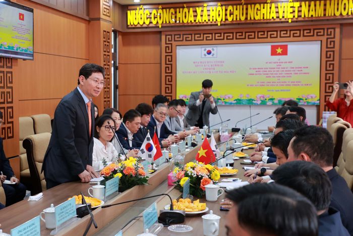 이상일 용인특례시장이 현지 시간으로 지난 26일 꽝남성의 성도인 땀끼시를 방문해 MOU를 체결하면서 인사말을 하고 있다. ⓒ용인시 제공