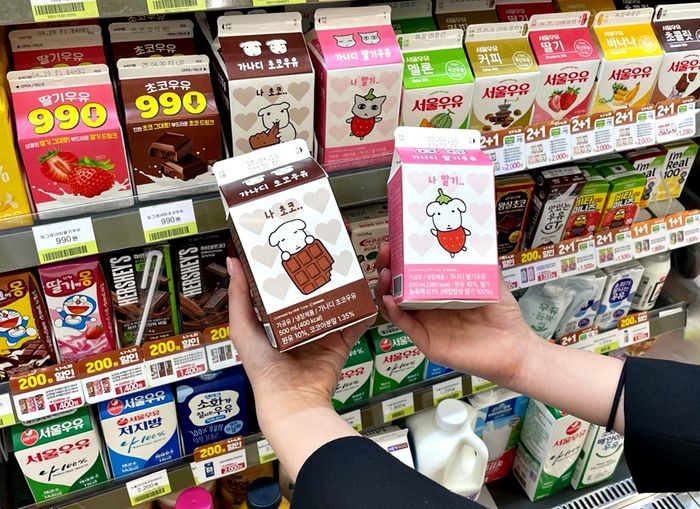 가나디와의 첫 번째 컬래버 상품은 가나디 초코우유, 딸기우유(500ml)다. 패키지에 귀여운 가나디가 디자인된 해당 제품은 신선한 국내산 원유가 들어가 있으며, 각각 달콤한 초코맛과 상큼한 딸기맛을 넉넉한 용량으로 즐길 수 있다.