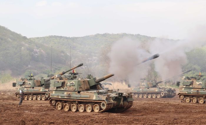 22일 육군에 따르면 제1사단 및 제1포병여단 예하 포병대대 소속 K55A1 자주포 6문과 K9A1자주포 12문 전력은 전날 파주 임진강변 포진지에서 미군 스토리 사격장 내 표적지를 향해 총 60여발을 사격했다.