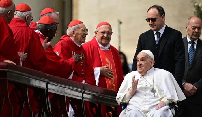 22일(현지시간) 영국 일간 더타임스 등에 따르면 올해 초 심각한 폐렴으로 치료를 받고 지난 달 23일 퇴원한 교황은 최소 2개월은 요양하며 휴식하라는 의료진의 권유를 무시하고 외부 활동을 빠르게 재개했다. 퇴원 2주 만인 지난 6일 바티칸 성 베드로 광장에 예고없이 모습을 드러낸 것을 시작으로, 열정적으로 외부 일정을 이어갔다.