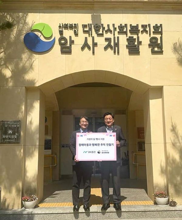 성무용 iM증권 대표이사는 “사회적 관심과 지원의 사각지대에 놓인 취약 장애아동을 지원하기 위해 이번 활동을 마련했다”며 “다양한 사회공헌활동을 통해 선한 영향력이 확대될 수 있도록 하겠다”고 말했다.