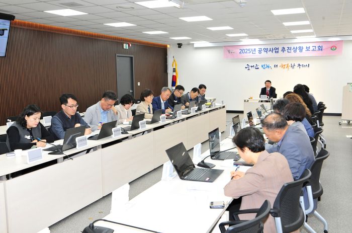 백경현 구리시장 주재로 열린 이날 보고회에는 공약 추진부서 국․소장과 부서장 30여 명이 참석했다. 현재 완료된 100건의 공약사업에 대한 추진 상황을 점검, 진행 중인 42건의 공약사업의 효과적인 이행률 제고 방안에 대한 논의가 이루어졌다.