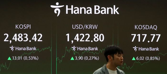 서울 중구 하나은행 딜링룸 전광판에 지수가 표시되고 있다(자료사진). ⓒ뉴시스