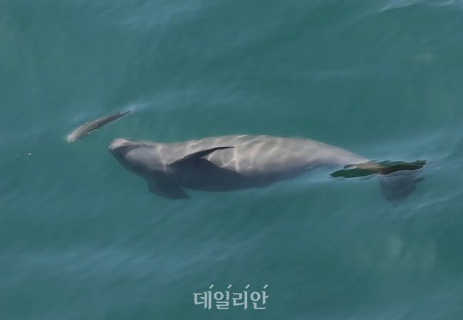 새끼 상괭이와 어미 상괭이가 먹이를 추적하는 영상. ⓒ국립공원공단