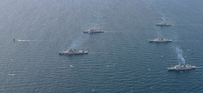 한미 연합 해군이 8일 동해상에서 전술기동을 하고 있다. 한미 해군은 5월 8일부터 11일까지 동해에서 적의 해상도발에 대한 즉각적인 대응태세를 확립하고 연합작전 수행능력을 강화하기 위한 연합 해상훈련을 진행했다.ⓒ해군
