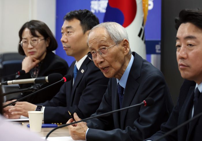 민주당은 김 후보에 대한 공세 수위를 한층 더 높였다. 한때 이회창 전 총재의 책사로 알려졌던 윤여준 상임총괄선대위원장은 이날 오전 서울 여의도 당사에서 기자간담회를 열어 "한덕수 후보는 탄핵 당한 정부의 총리이고 김문수 후보는 그 정부의 장관 아니냐"며 "남들이 보기엔 차이도 없는 사람들인데 그들끼리는 무슨 의미가 있는지 날치기하듯이 교체했다가 다시 번복했다"고 비판했다.