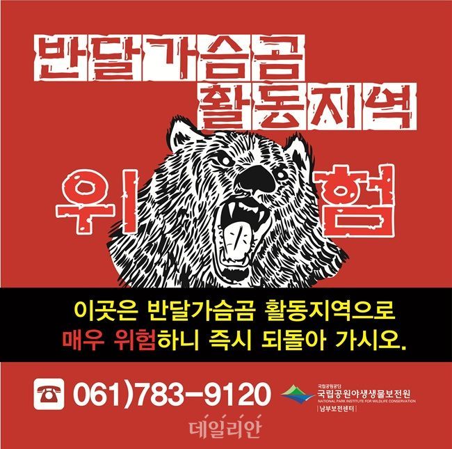 반달가슴곰 활동 지역임을 알리는 포스터. ⓒ국립공원공단