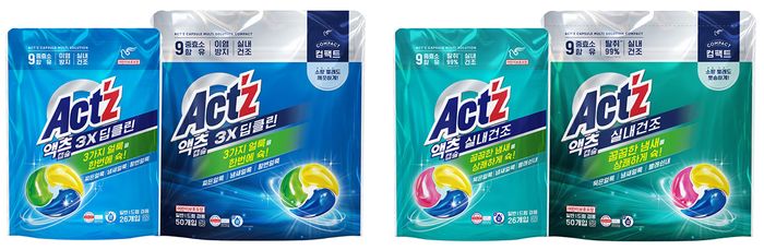 ‘액츠 캡슐 3X딥클린’ 2종은 찌든 얼룩, 냄새 얼룩, 황변 얼룩 등 쉽게 지워지지 않는 3가지 얼룩을 한번에 제거할 수 있는 강력한 세척력이 특징인 제품이며, ‘액츠 캡슐 실내건조’ 2종은 실내건조 시 발생할 수 있는 꿉꿉한 냄새에 대한 걱정을 덜어주는 실내건조 전용 캡슐세제다.