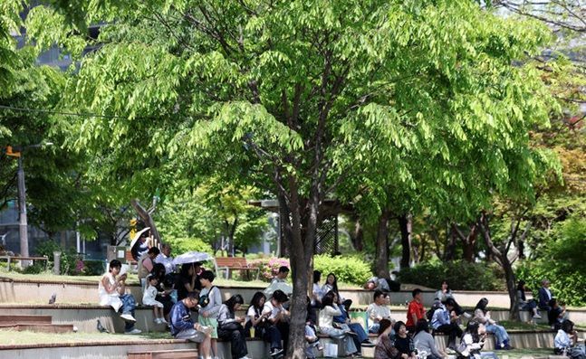 시민들이 그늘에서 더위를 피하고 있다. ⓒ 뉴시스