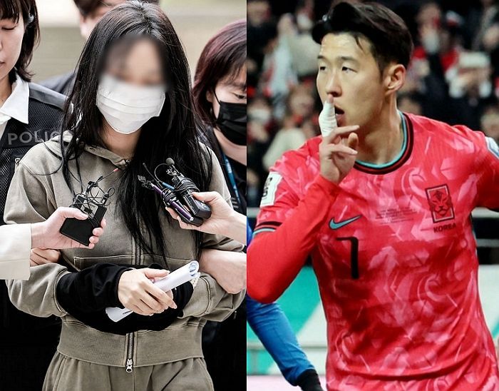 잉글랜드 프로축구 프리미어리그 토트넘 홋스퍼 주장 손흥민을 상대로 임신을 주장하며 금품을 요구한 혐의를 받는 20대 여성 양모씨가 17일 오후 서울 서초구 서울중앙지방법원에서 열린 영장실질심사에 출석하고 있다. ⓒ뉴시스