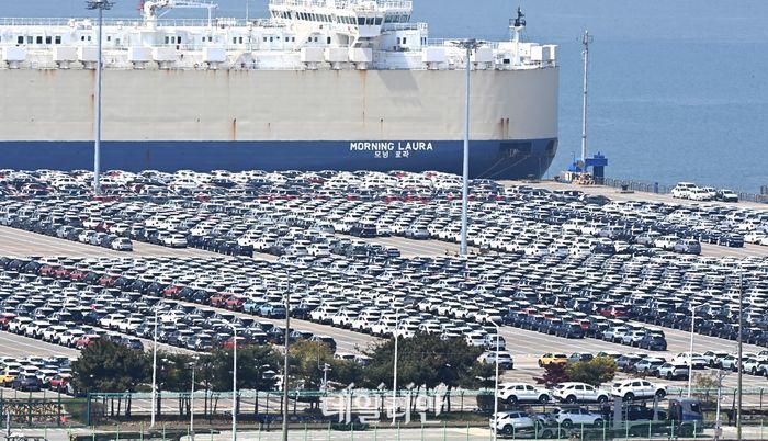 경기 평택항 자동차 전용부두에 선적을 기다리는 수출용 차량이 세워져 있다.ⓒ뉴시스