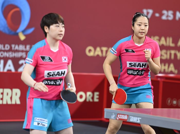 여자탁구 복식 신유빈(대한항공)-유한나(포스코인터내셔널) 조와 이은혜(대한항공)-김나영(포스코인터내셔널) 조가 2025 국제탁구연맹(ITTF) 세계선수권대회에서 나란히 8강에 올랐다.