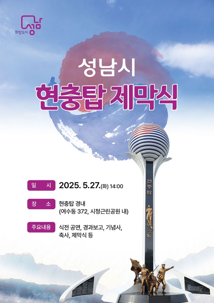 시청 공원 현충탑 제막식은 이날(27일) 오후 2시 신상진 성남시장과 보훈단체 회원, 일반시민 등 300여 명이 참석한 가운데 진행된다.