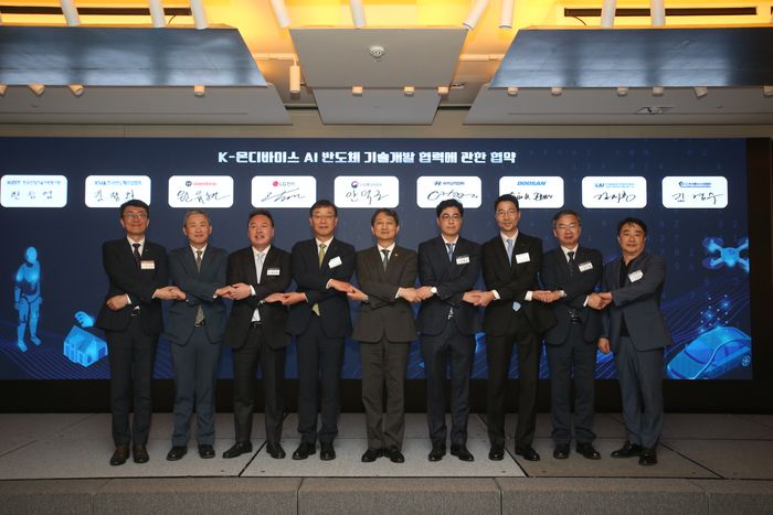 산업부와 KEIT, 현대자동차, LG전자, 두산로보틱스, 대동, KAI, 한국반도체산업협회 및 한국팹리스산업협회는 지난 20일 서울 웨스틴조선 호텔에서 개최된 AI 반도체 협업포럼에서 미래 신시장 선점 및 국내 팹리스 역량강화를 위한 K-온디바이스 AI 반도체 기술개발 협력에 관한 협약(MOU)을 체결했다.