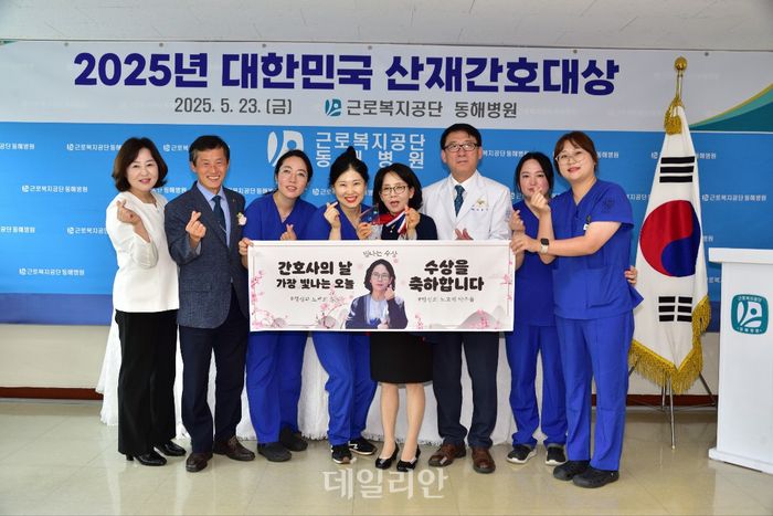 근로복지공단은 지난 23일 동해병원에서 이양순 간호사(우측에서 4번째)에게 2025년 대한민국 산재간호대상을 수여했다. ⓒ근로복지공단