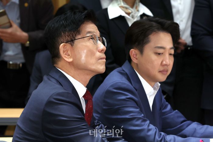 이준석 개혁신당 후보와 김문수 국민의힘 대선 후보가 지난 19일 오전 서울시청에서 열린 약자와 동행하는 서울 토론회에 참석했다. ⓒ데일리안 방규현 기자